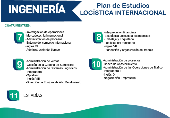 | 7mo Cuatrimestre | 8vo Cuatrimestre | 9no Cuatrimestre | 10mo Cuatrimestre |